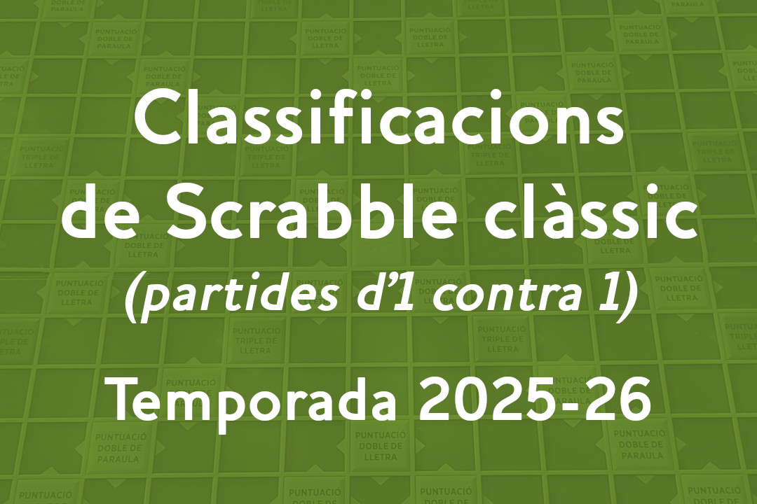 Aquí tens totes les dades de les partides de Scrabble d’1 contra 1 (també conegudes com a Scrabble clàssic), de la temporada 2025-2026 de les trobades del Club de Scrabble Delta Prat.